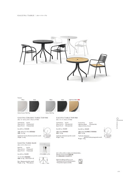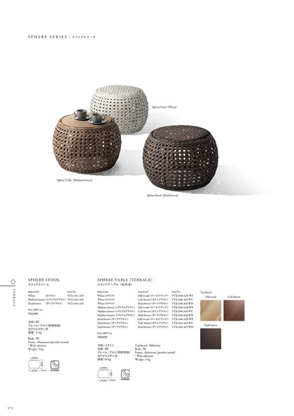 VTK-040 スフィアテーブル(屋外用)VCG-031 スフィアスツール VTK-044/045/046 ガルーナテーブル