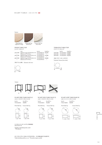 VTA-048 ウッドテーブルトップ VTA-049 テラゾーテーブルトップ VTL-017 エカート ローテーブルベース VTS-025 エカート サイドテーブルベース