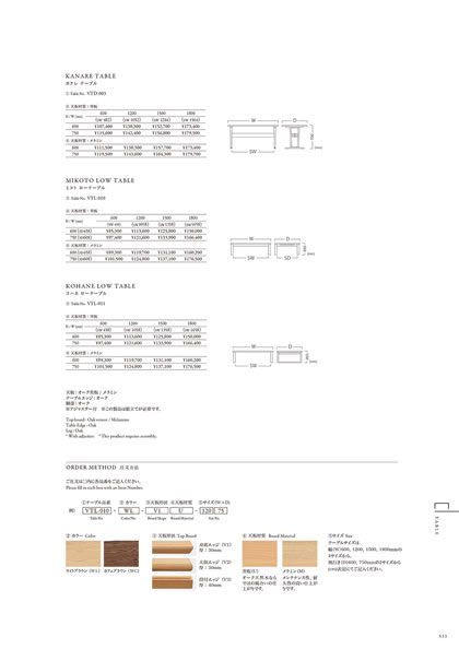 VTD-003 カナレテーブル VTL-010 ミコトローテーブル VTL-011 コハネローテーブル カワジュンWEBカタログ