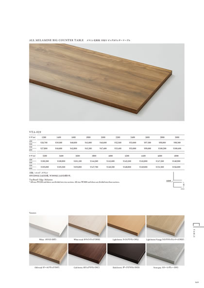VTA-027 メラミン化粧板共貼りビッグテーブル VTA-029 メラミン化粧板共貼りビッグカウンターテーブル