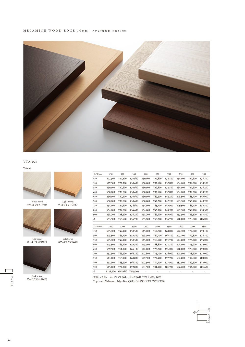 P.544 VTA-024 メラミン化粧板木縁10mm