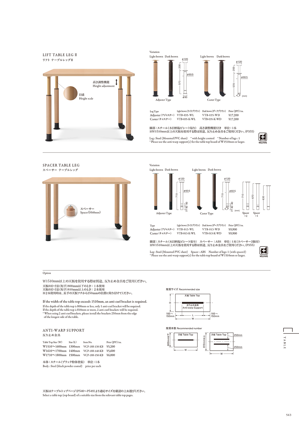 P.563 VTB-013 スペーサーテーブルレッグ VTB-035 リフトテーブルレッグⅡ