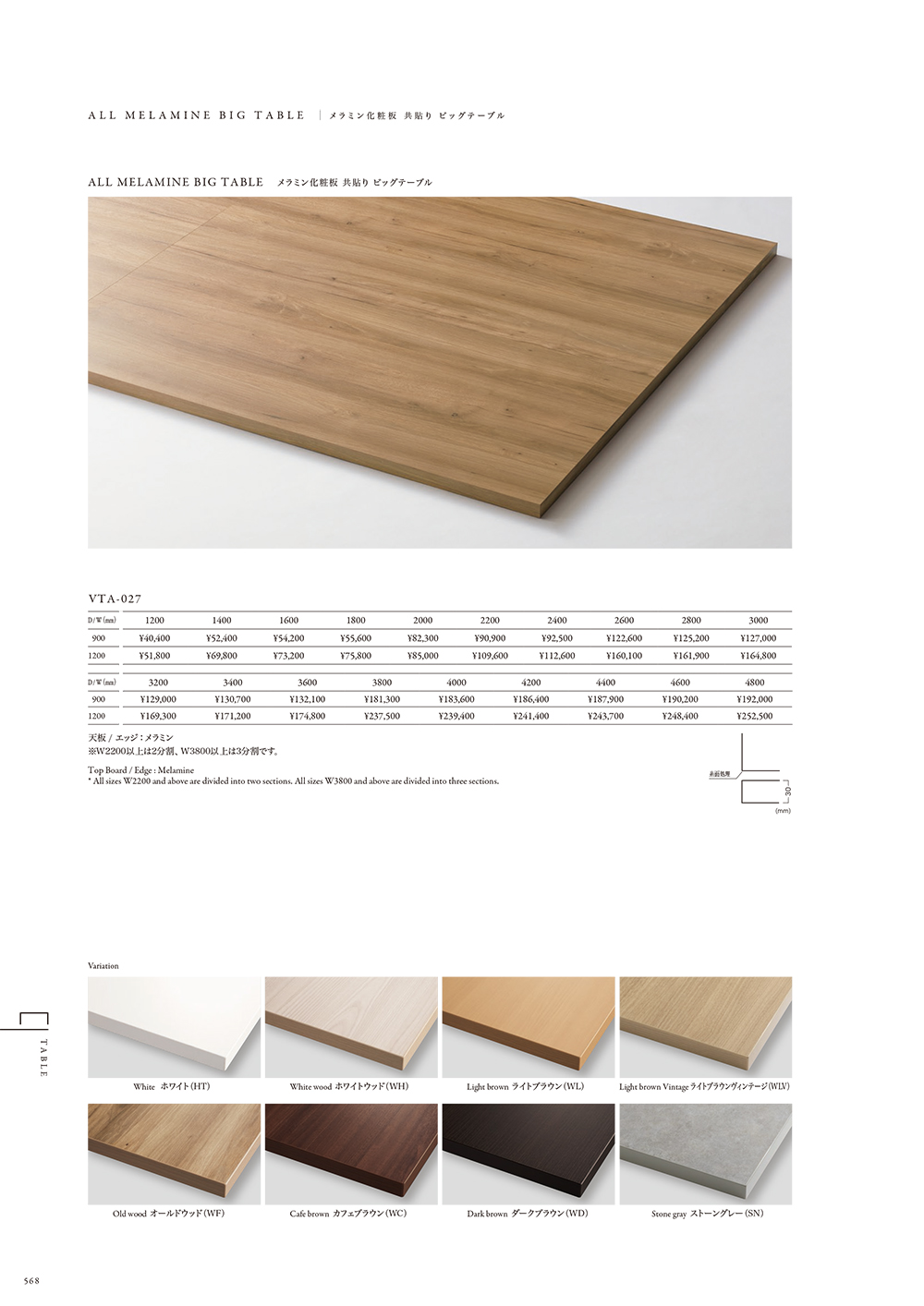 P.568 VTA-027 メラミン化粧板共貼りビッグテーブル