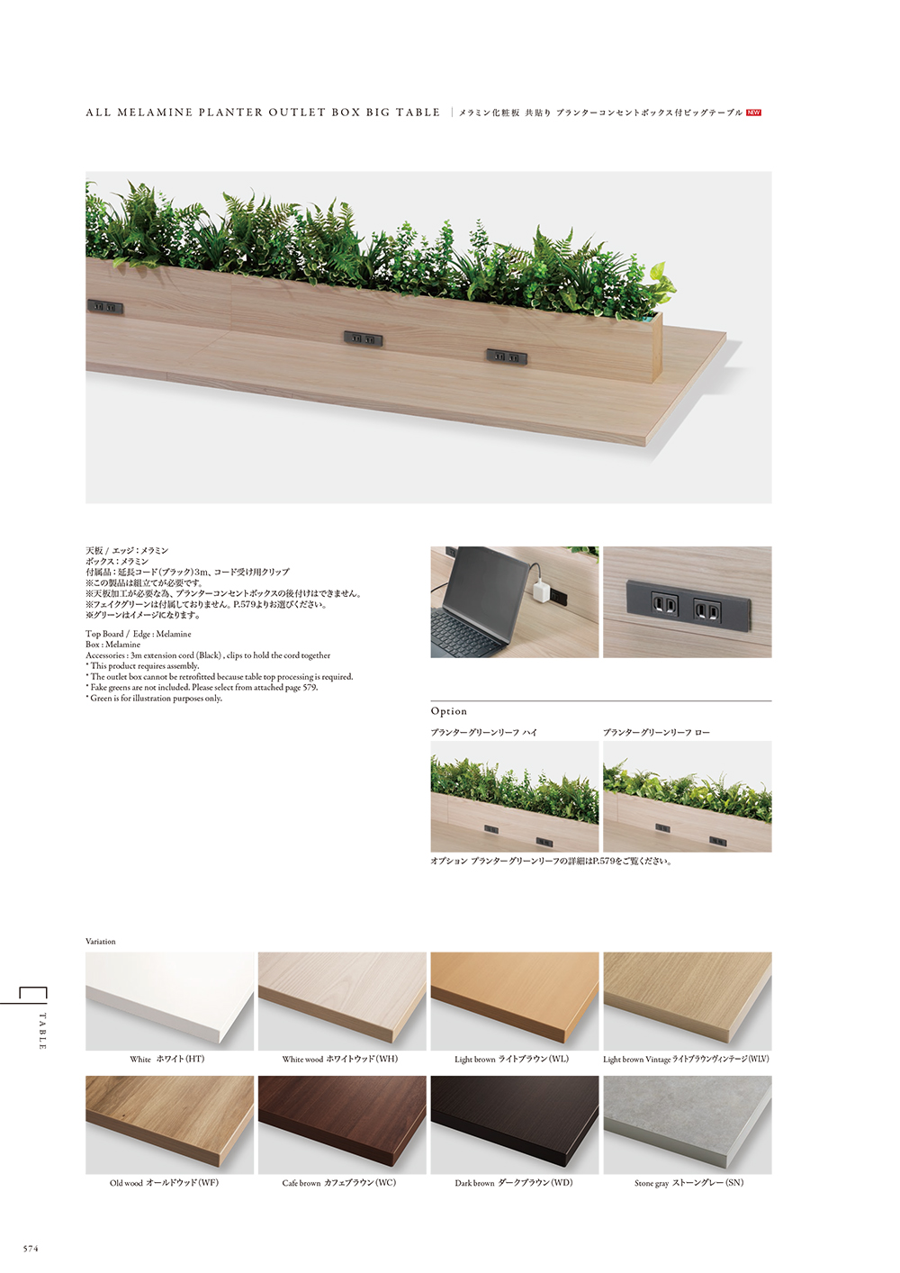 P.574 VTA-037 メラミン化粧板 共貼りプランターコンセントボックス付ビッグテーブル