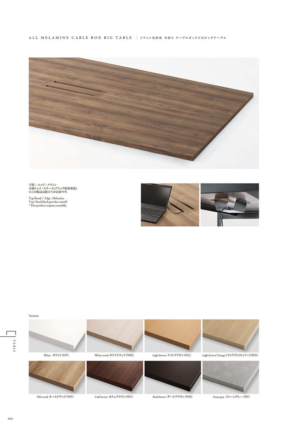 P.580 VTA-035 メラミン化粧板 共貼り ケーブルボックス付ビッグテーブル