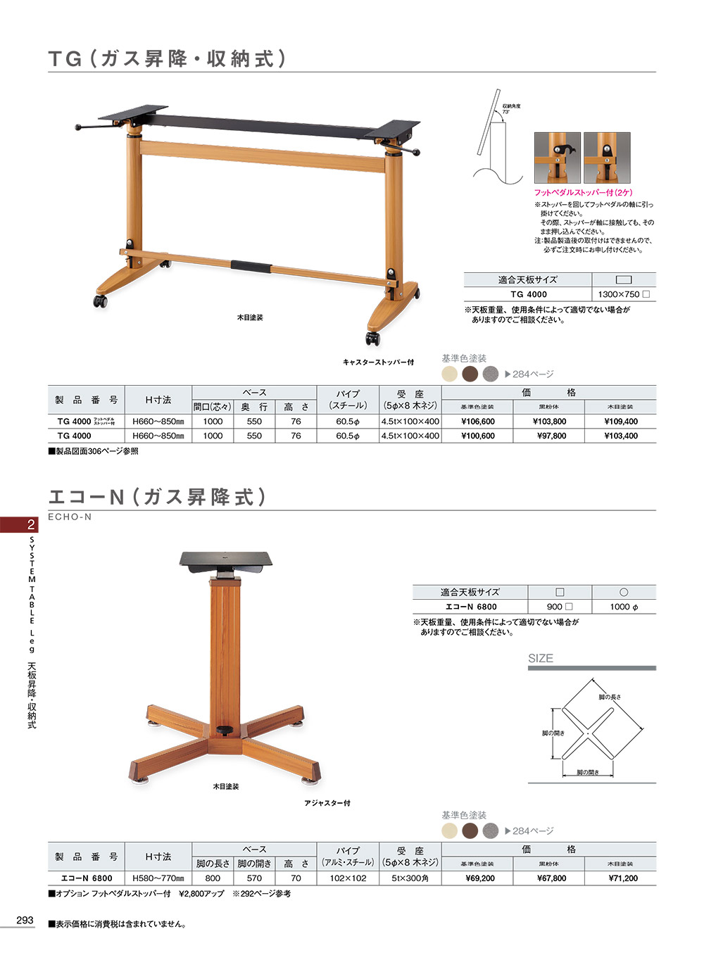 P.293 TG(ガス昇降・収納式)・エコーN(ガス昇降式)